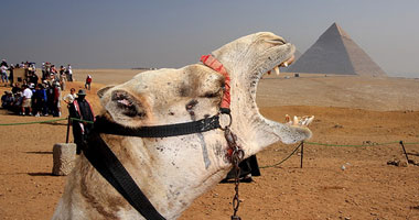 تجولت الناقة فى أرجاء السوق الشعبى بصحبة مالكها مختار وقيع الله ومئات الزوار الذين التقطوا الصور التذكارية معها.