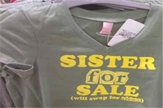 عبر عدد من المتسوقين عن استيائهم أثناء تجولهم في أحد المتاجر الشهيرة بجدة عن وجود "تي شيرت" كتب عليه بالانجليزية عبارة sister for sale will swap for shoes وتعني لدينا أخت للبيع.. ونقبل استبدالها بحذاء، الامر الذي أثار غضبهم.